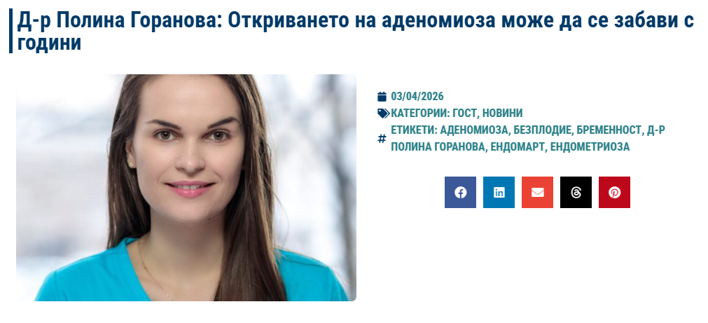 Получавайте най-актуалната информация, свързана с нас, услугите и екипа ни от лекари!