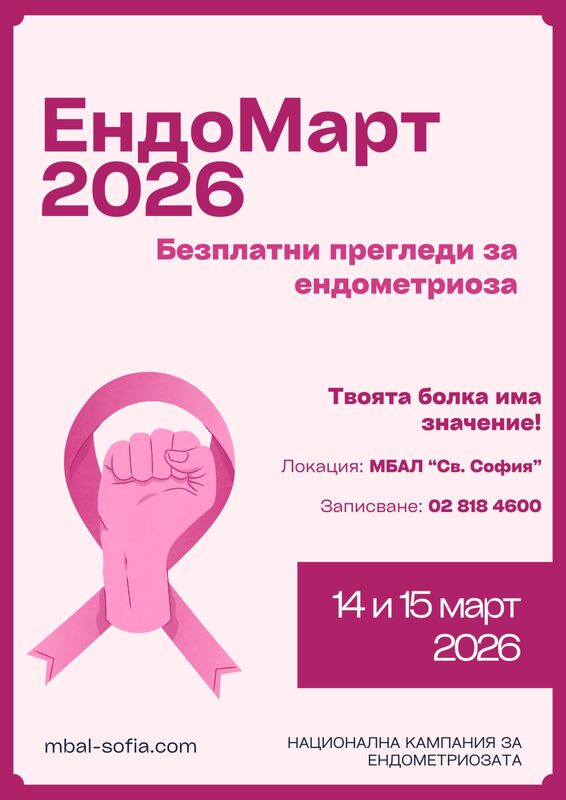 В Световния месец на ендометриозата - “ЕндоМарт”, екипът на Клиниката по акушерство и гинекология организира безплатни прегледи на пациентки - консултация и ранна диагностика.